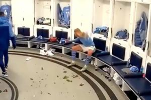 体育资讯12月31日讯 曼城官推晒视频,更衣室里哈兰德暴怒披头散发砸水瓶,瓶子反弹正好弹进垃圾桶。