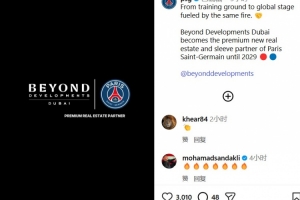 巴黎官方:与阿联酋房地产公司Beyond达成赞助协议,签约至2029年