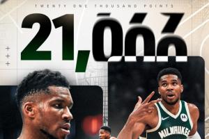 此役,雄鹿球星字母哥砍下29分8篮板2助攻2抢断,NBA生涯常规赛总得分突破21000大关(21002分)。