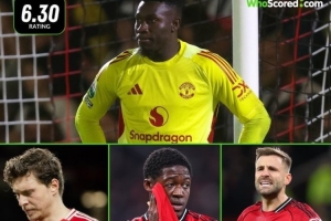 体育资讯1月8日讯 阿莫林已经被曼联解雇,whoscored也统计了他任期内的评分最差阵容,奥纳纳评分最低。