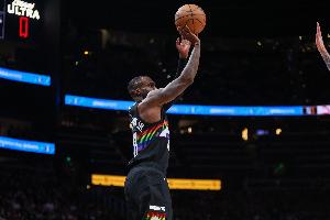 掘金球员小哈达威上半场替补出战手感相当火热,他在轮换阶段用很高的三分命中率帮助球队建立领先。