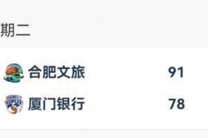 合肥文旅 91-78 厦门银行,合肥文旅四人得分上双,纳雷德砍下24分12篮板的两双数据,约翰逊15分,卡耶14分,张敏11分。厦门银行同样四人得分上双,谢泼德28分8篮板6助攻,赖婷艺15分,谢尔比12分,蔡亚飞10分