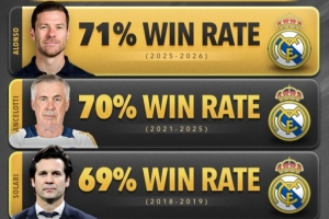 体育资讯1月13日讯 皇马官宣阿隆索下课,阿隆索在白衣军团的执教生涯仅225天。据Score90数据统计,皇马近五任主教练中,阿隆索以71%的胜率排名榜首,安帅70%次之。