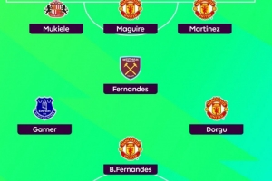 中场:马特乌斯·费尔南德斯(西汉姆联)、詹姆斯·加纳(埃弗顿)、B费(曼联)、多尔古(曼联)