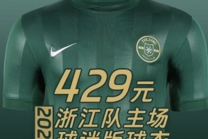 体育资讯1月28日讯 根据浙江足球俱乐部官方的消息,浙江队新赛季主场球迷版球衣的会员售价为429元。