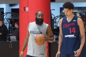 体育资讯12月24日讯 今天对阵火箭赛前,美媒发布了一则快船球星哈登和新秀中锋尼德豪泽挡拆训练的视频。