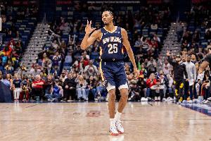 鹈鹕球员墨菲本场比赛依旧表现全面,三分线外再度投出高命中率,他第三节爆发单节轰下17分为球队吹响反击号角。