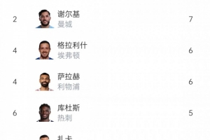 本赛季英超助攻榜: