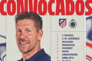 体育资讯2月24日讯 欧冠附加赛次回合,马竞将坐镇主场迎战布鲁日。目前,床单军团已经公布了本场比赛大名单,阿尔瓦雷斯、格列兹曼领衔,朱利亚诺·西蒙尼、卢克曼在列。