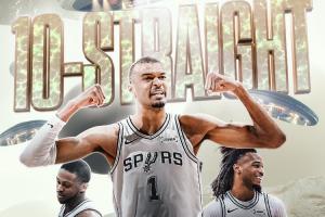 这是马刺自2015-16赛季以来的首次10连胜,当时他们曾取得13连胜。