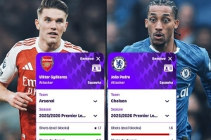 体育资讯2月27日讯 下一轮英超将迎来焦点战阿森纳对阵切尔西,数据网站Squawka也对比了两队前锋约克雷斯、若昂·佩德罗本赛季英超数据对比(每90分钟数据):