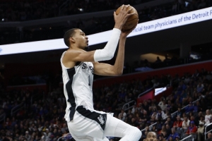 此役,文班亚马出战24分07秒,5投3中,三分1中1,罚球5中3,得到10分8篮板4助攻3抢断5盖帽,正负值+41。