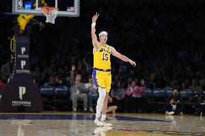 3月9日,湖人在主场以110比97击败了尼克斯队。本场比赛,詹姆斯因伤缺席,虽然湖人受到了一定的不利影响,但是东契奇与里夫斯接管了比赛,他们合力砍下了60分的高分。本赛季,当詹姆斯缺阵,东契奇与里夫斯都可以出场时,湖人战绩是9胜2负。