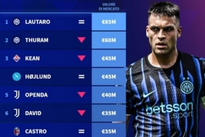 1、劳塔罗(国际米兰),8500万欧元